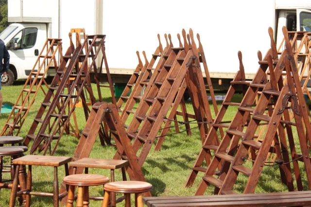 These beautiful ladders looked like they had come from old libraries they could be used for towels, or pot plants in a conservatory or even better to display quilts. Karen and I have an old French apple picking ladder each that we use to display our quilts on at home.