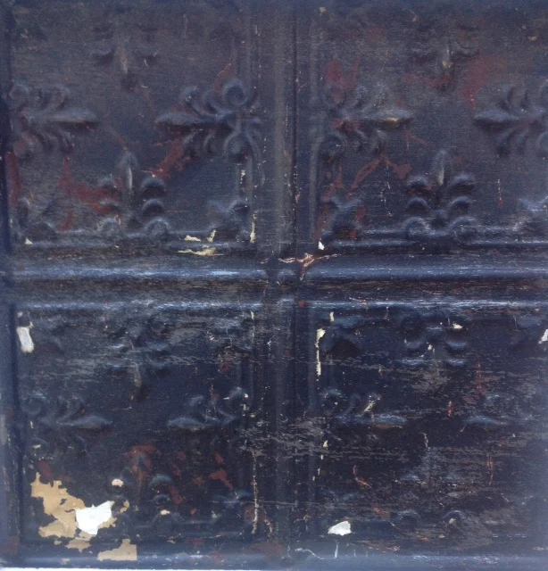 We loved their rustic appearance and patterned finish so duly purchased two. These tiles were manufactured originally in the 1880's as an affordable way to dress ceilings. They were originally used to emulate high-end decorative plaster and also to offer some fire protection in the home. This was very important as all home cooking, lighting and heating were done over open flames. Originally the panels were made of raw steel but after some time they started to plate them with tin to slow down the rusting process and so the tin ceiling came about.