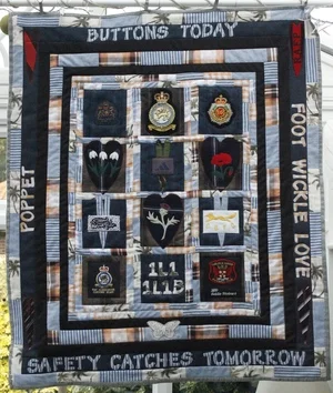 "For me, the quilts tell a story of Dave's professional and personal life; with both of us serving in the RAF, they tell OUR story."